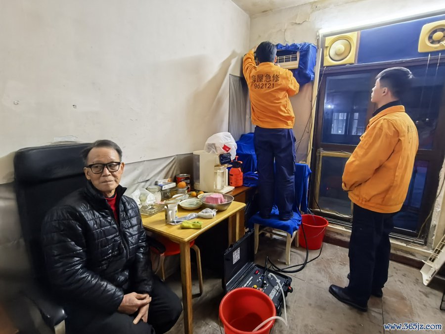 中山物业办当事人说念主员在宜川一村茕居老东说念主虞忠大族里清洗空调。周楠 摄