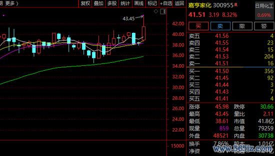 12月24日,嘉亨家化股价高潮8.32%,报收41.51元/股,总市值41.84亿元。